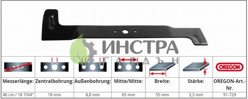 НОЖ 46.0 СМ CASTELGARDEN, OLEOMAC, TC92 (ДЕСЕН) 182004345 - 91-729
