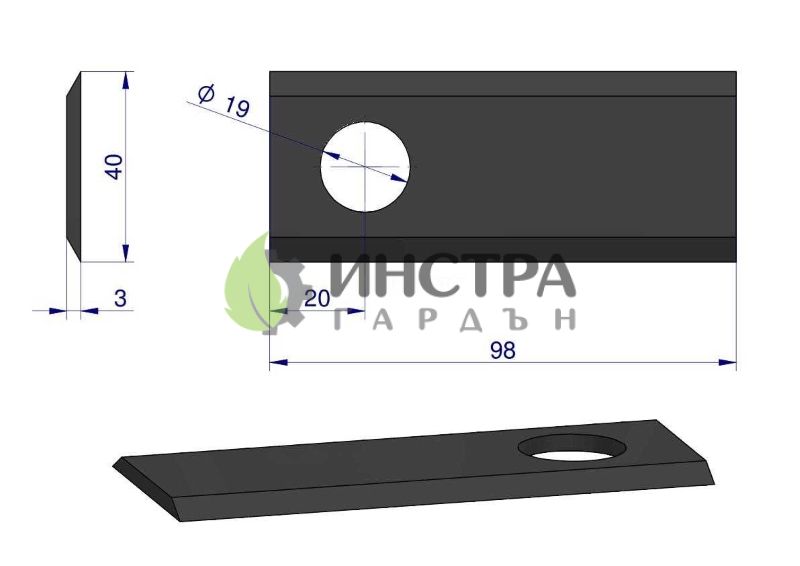 НОЖ ЗА РОТОРНА КОСАЧКА ДЖИРАЛДА 98X40X19 - 098D